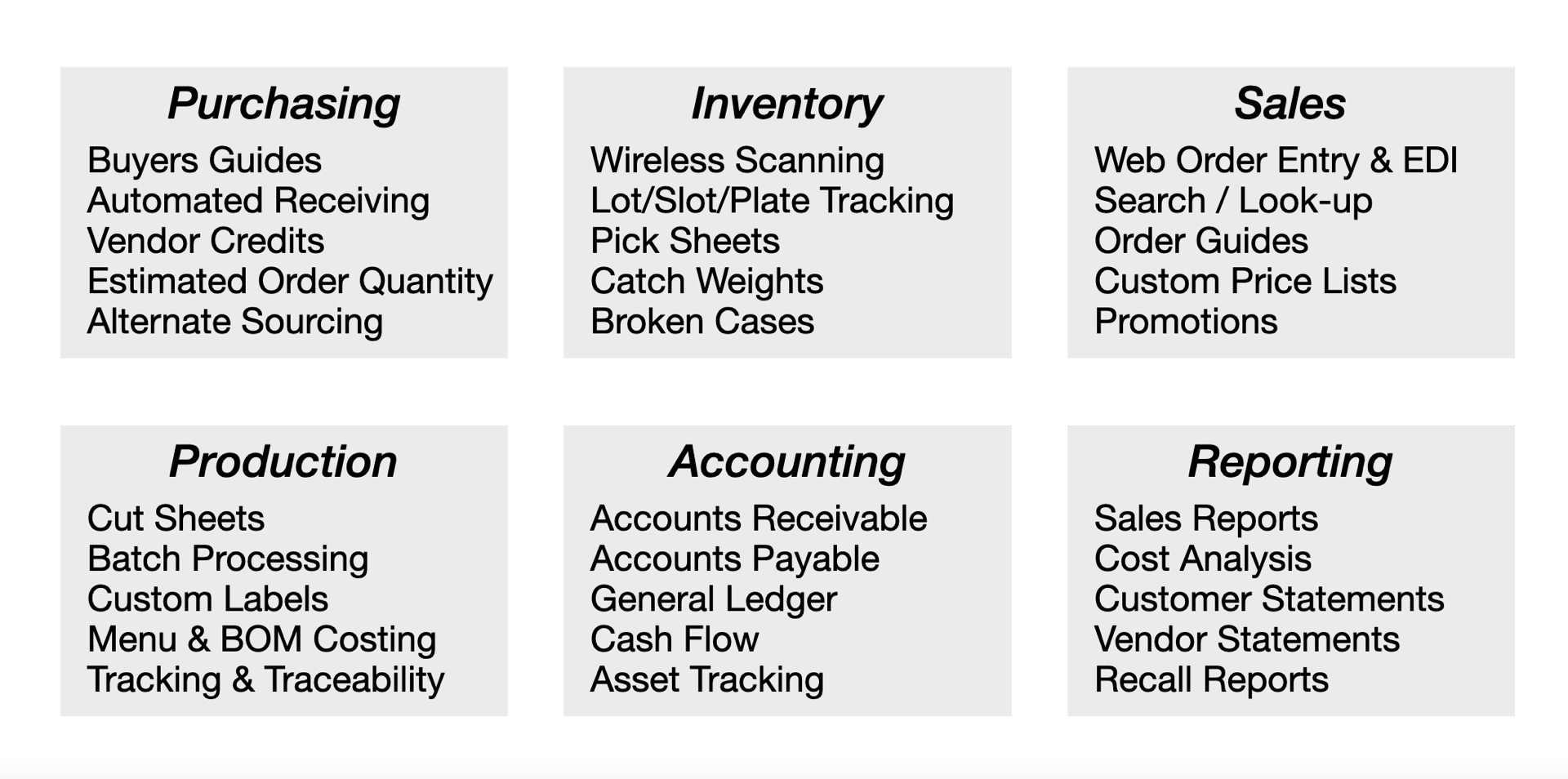purchasing, production, sales and accounting.